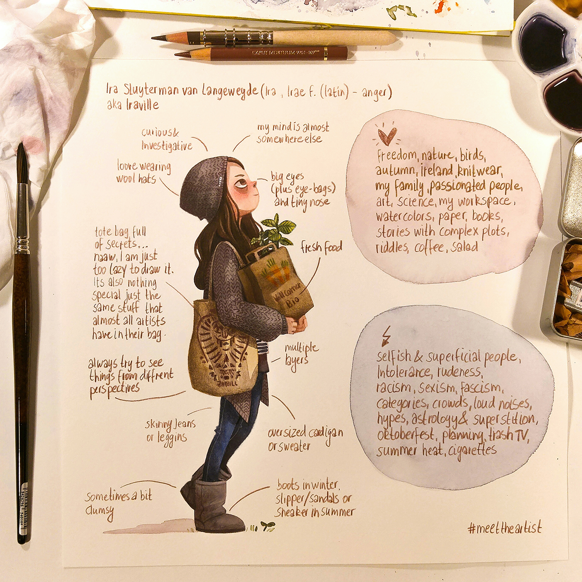 Hallo, mein Name ist Ira Sluyterman van Langeweyde aka Iraville. Ich bin freischaffende Diplom-Designerin aus München mit den Schwerpunkt Illustration.
